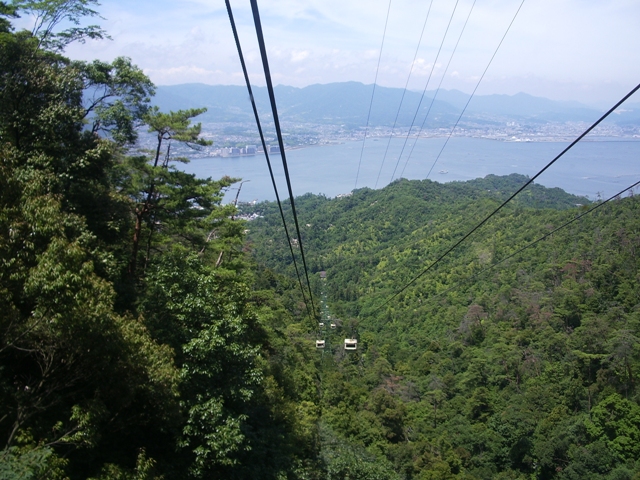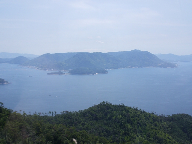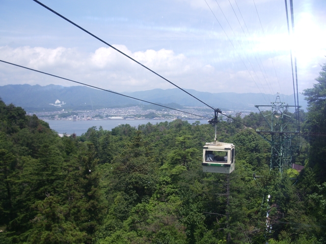 途中で乗換えし、今度は15~20人くらいは乗れそうな大き目のロープウェイに。そこから見える瀬戸内海がよかった。