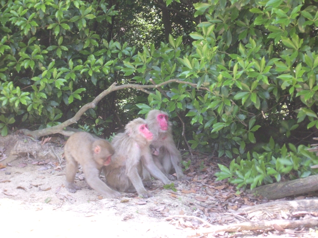 登山中も猿がやたらいたけど、下山中、家族を発見。いかにも写真撮ってくれって感じで止まったままだったんて、撮ってやった。よく見ると赤ん坊もいて四匹。