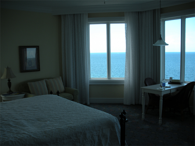 …と思ってたが、飛行機の予約をした後、宿泊先の予約をした会社に手違いがあり、最初の一泊は別のところで過ごさないといけないことが判明。となると、どうせ一泊なら、安くてもせめて眺めがいいところに泊まろうってことで、周りにレストランも店も何も無いのを覚悟で別のホテルを予約。案の定、車なしではどこにもいけないような所だったが、眺めはさすがによかった。