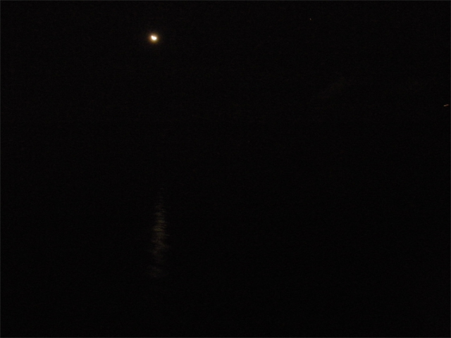 月の光だけで、海の水面が照らされて、水平線や雲もはっきり見えてて、感動した。こういうのは、肉眼で見てなんぼのもんかもなぁ。