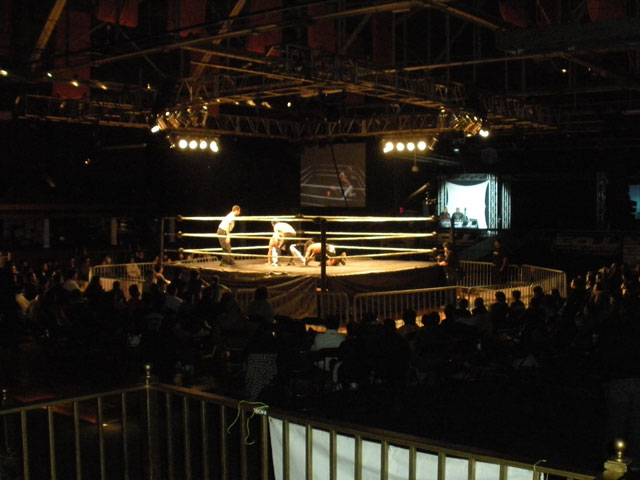 開始は3時からということだったが、大抵インディ団体の場合は、多くの面で段取りが悪いんで、時間どおり始まるだなんて、こっちも思っちゃいない。そのうえ、よくアメリカでは、『メキシカン・タイム』という表現が使われるくらい、あっちの国の人達は、時間どおりに行動しないという印象が強い。案の定、試合が始まったのは、4時近くなってから。驚くのは、客の多くも、そのくらいの時間に来たってこと。