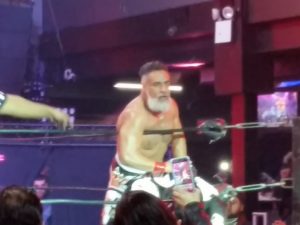 おそらくパルカは、「お前、こないだ試合で負けて覆面脱いだのに、なんでまた覆面被って出てきてるんだ。」みたいなことを言ってたんだろうと思う。結局予想通り、試合前に自ら覆面を脱いだワグナー。2人とも50過ぎてるが、結構盛り上げて、いい味出してたと思う。